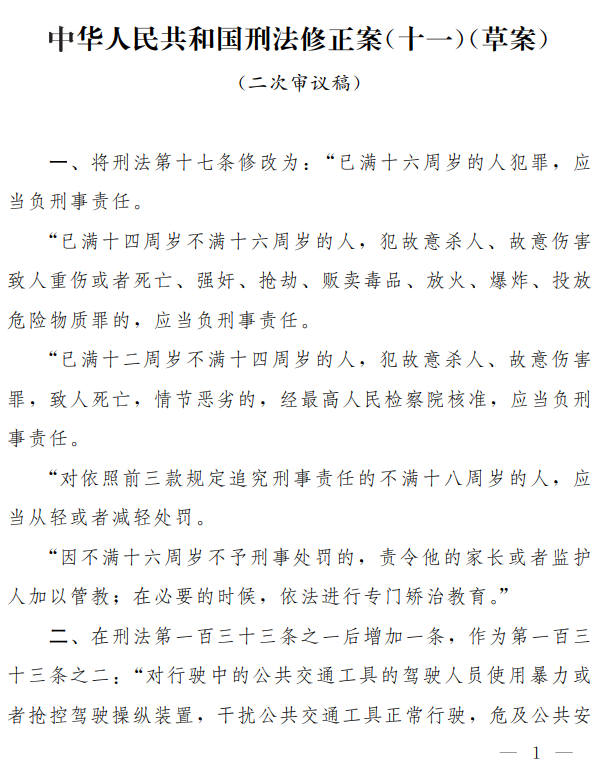 第十三屆全國人大常委會第二十二次會議對《中華人民共和國刑法修正案(十一)(草案二次審議稿)》進(jìn)行了審議,現(xiàn)公布《中華人民共和國刑法修正案(十一)(草案二次審議稿)》全文。