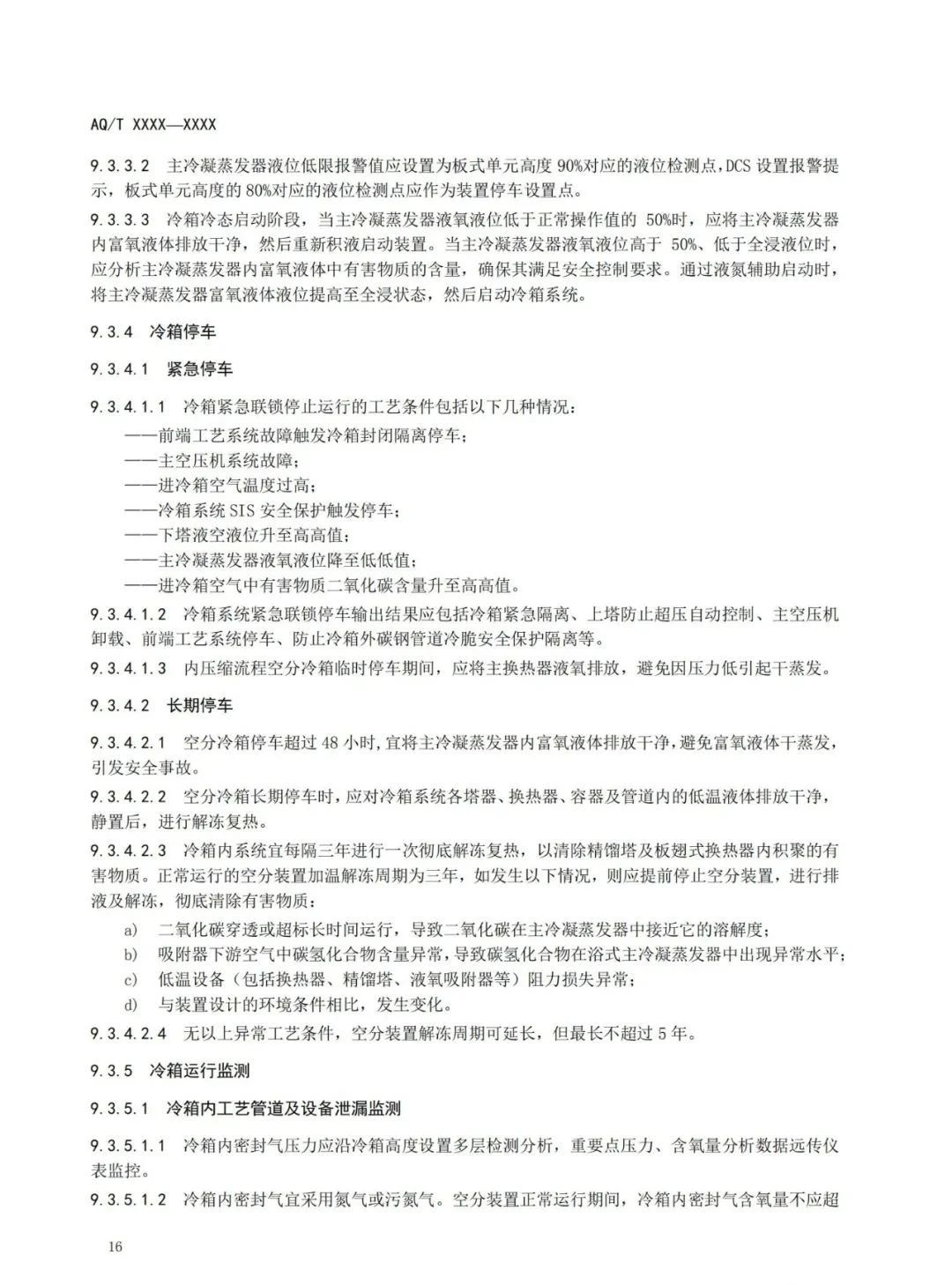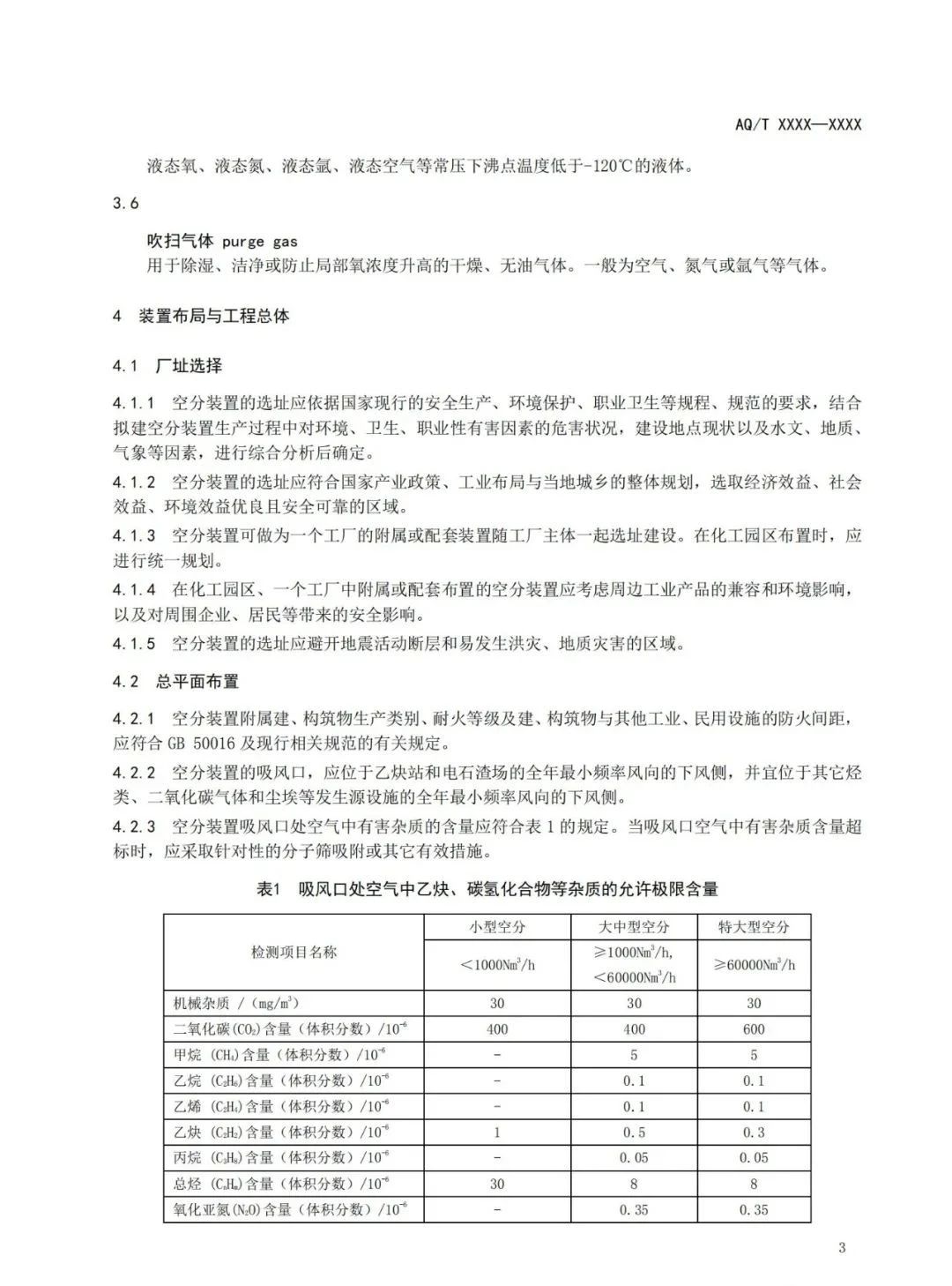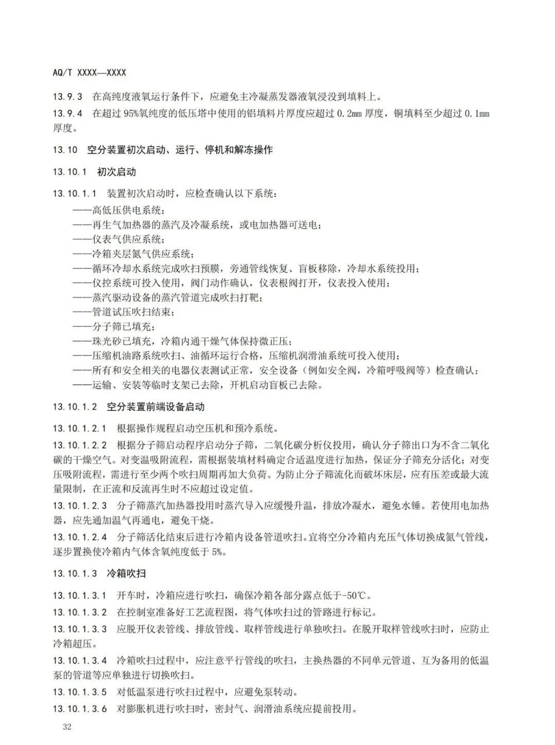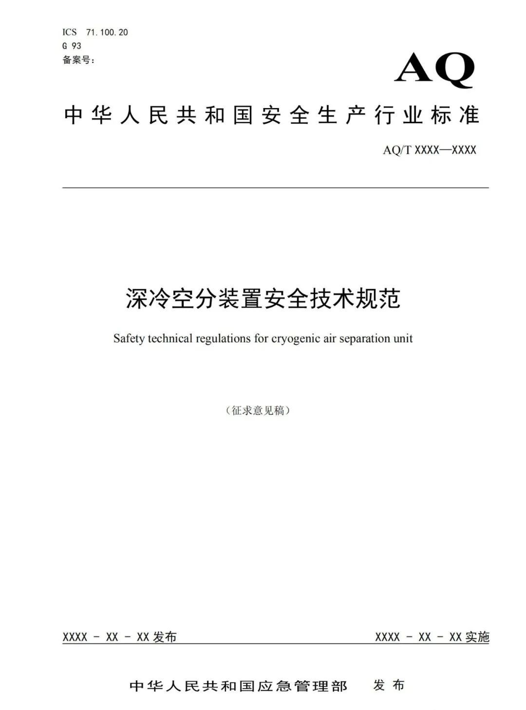12月15日,國家應(yīng)急管理部發(fā)布了關(guān)于《深冷空分裝置安全技術(shù)規(guī)范》(征求意見稿)等兩項標(biāo)準(zhǔn)征求意見。此次公開征求意見時間為2020年12月10日至2021年2月10日。本標(biāo)準(zhǔn)規(guī)定了深冷空分裝置的總體布局、吸入空氣質(zhì)量控制、壓縮機、膨脹機、低溫泵、空分冷箱和精餾系統(tǒng)、產(chǎn)品儲運、稀有氣體裝置、控制系統(tǒng)、安全操作運行、人員管理與事故應(yīng)急處置等內(nèi)容的要求。本標(biāo)準(zhǔn)適用于以冶金、有色、化工、石化、煤化工、電子等領(lǐng)域采用深冷空分裝置制取氧、氮、氬(包含:氦、氖、氪、氙稀有氣體)等空氣產(chǎn)品的企業(yè)。附件:深冷空分裝置安全技術(shù)規(guī)范(征求意見稿)