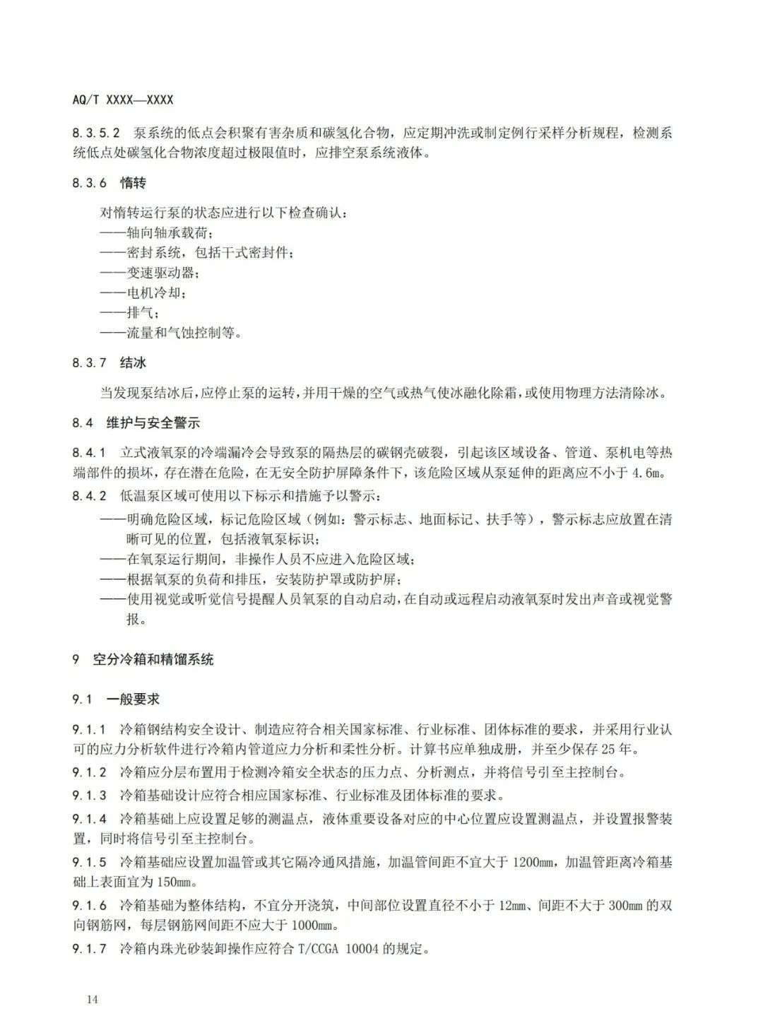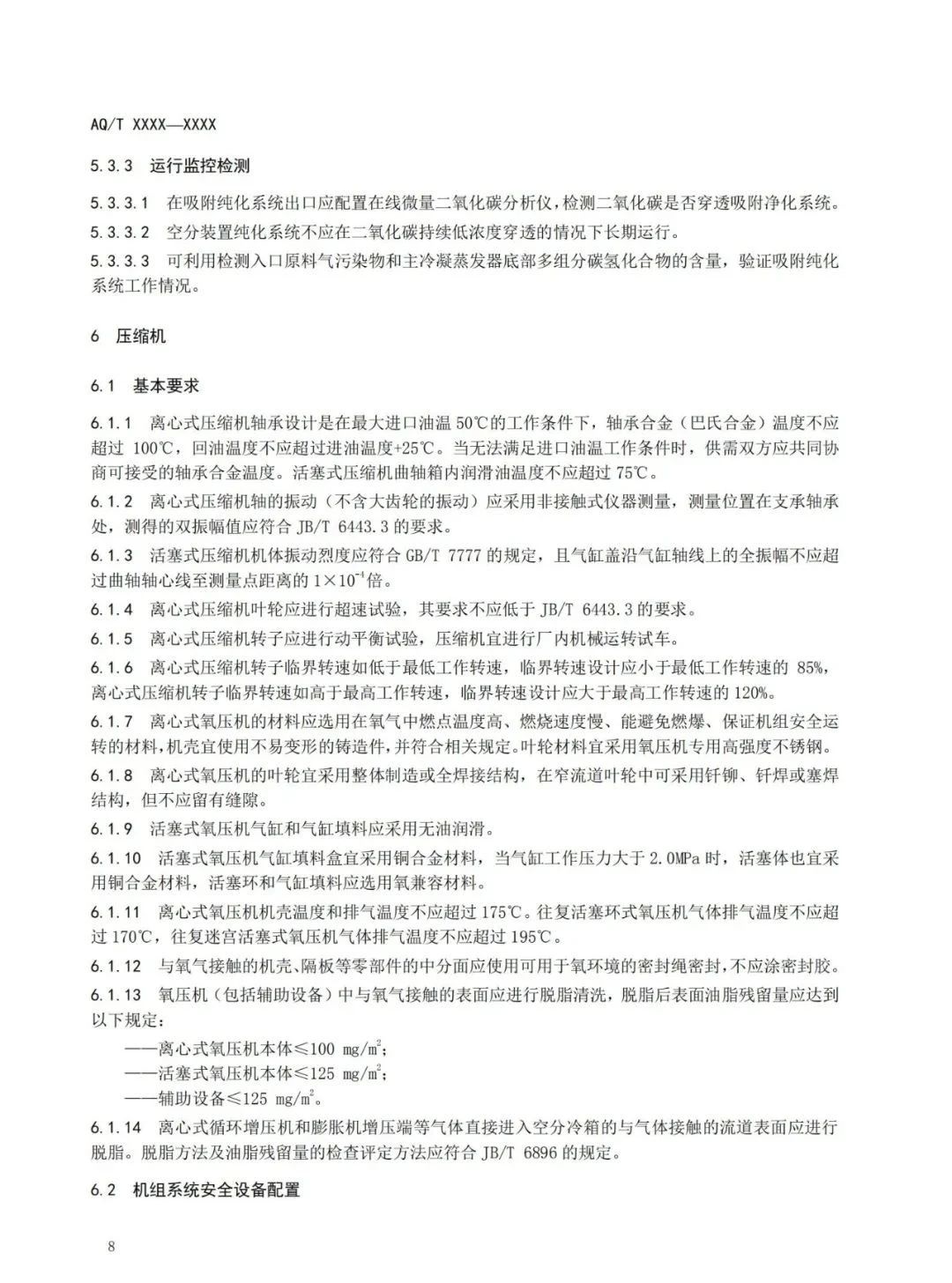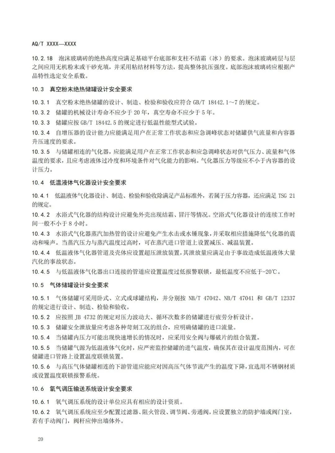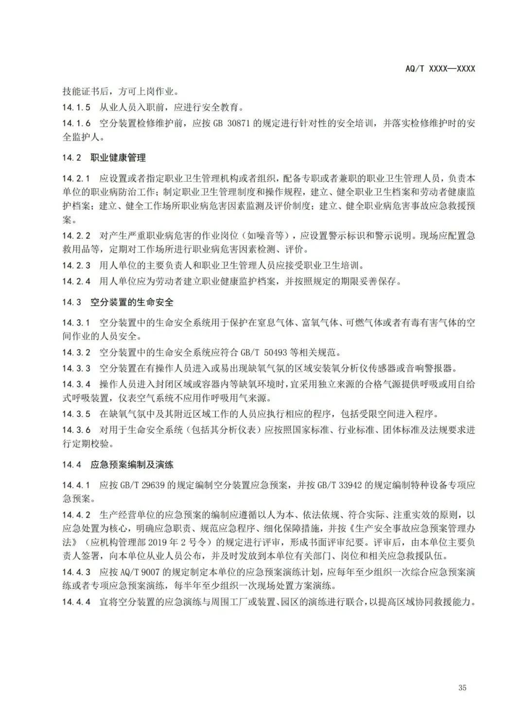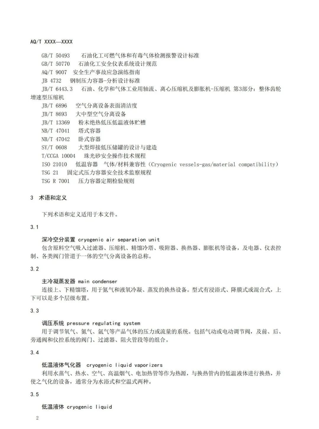 12月15日,國家應(yīng)急管理部發(fā)布了關(guān)于《深冷空分裝置安全技術(shù)規(guī)范》(征求意見稿)等兩項標(biāo)準(zhǔn)征求意見。此次公開征求意見時間為2020年12月10日至2021年2月10日。本標(biāo)準(zhǔn)規(guī)定了深冷空分裝置的總體布局、吸入空氣質(zhì)量控制、壓縮機、膨脹機、低溫泵、空分冷箱和精餾系統(tǒng)、產(chǎn)品儲運、稀有氣體裝置、控制系統(tǒng)、安全操作運行、人員管理與事故應(yīng)急處置等內(nèi)容的要求。本標(biāo)準(zhǔn)適用于以冶金、有色、化工、石化、煤化工、電子等領(lǐng)域采用深冷空分裝置制取氧、氮、氬(包含:氦、氖、氪、氙稀有氣體)等空氣產(chǎn)品的企業(yè)。附件:深冷空分裝置安全技術(shù)規(guī)范(征求意見稿)