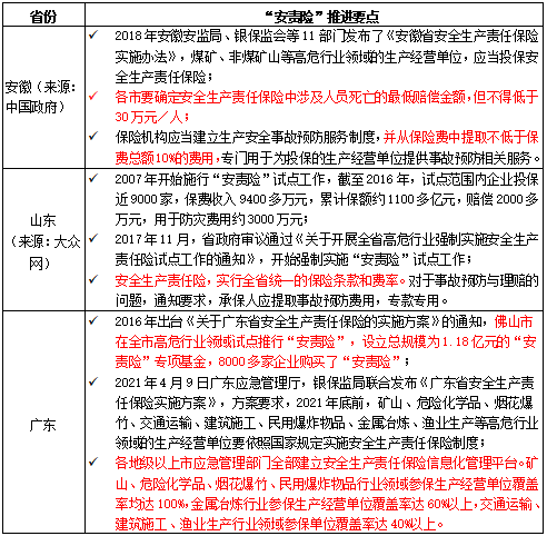 2016年12月,《中共中央國(guó)務(wù)院關(guān)于推進(jìn)安全生產(chǎn)領(lǐng)域改革發(fā)展的意見》明確要求:建立健全安全生產(chǎn)責(zé)任保險(xiǎn)制度,在礦山、危險(xiǎn)化學(xué)品、煙花爆竹交通運(yùn)輸、建筑施工、民用爆炸物品、金屬冶、漁業(yè)生產(chǎn)等高危行業(yè)領(lǐng)域強(qiáng)制實(shí)施,切實(shí)發(fā)揮保險(xiǎn)機(jī)構(gòu)參與風(fēng)險(xiǎn)評(píng)估管控和事故預(yù)防功能。