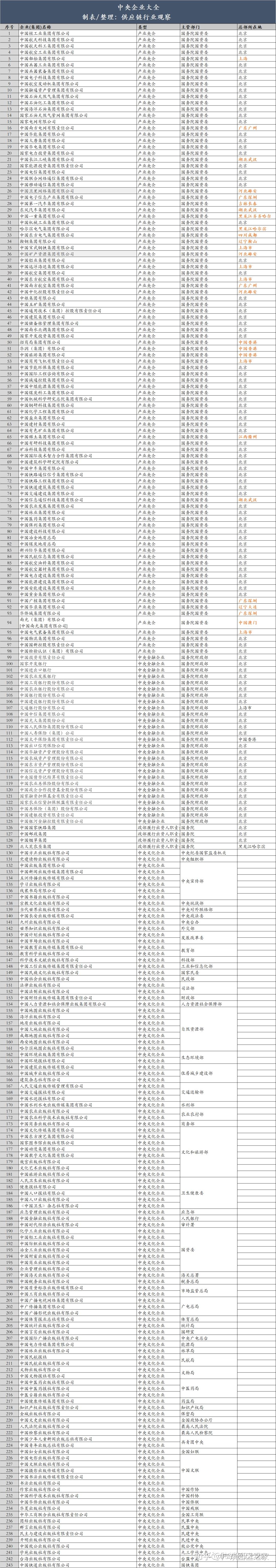 中國最全央企名錄及其行政級(jí)別劃分!(243家央企和665家省屬國企)