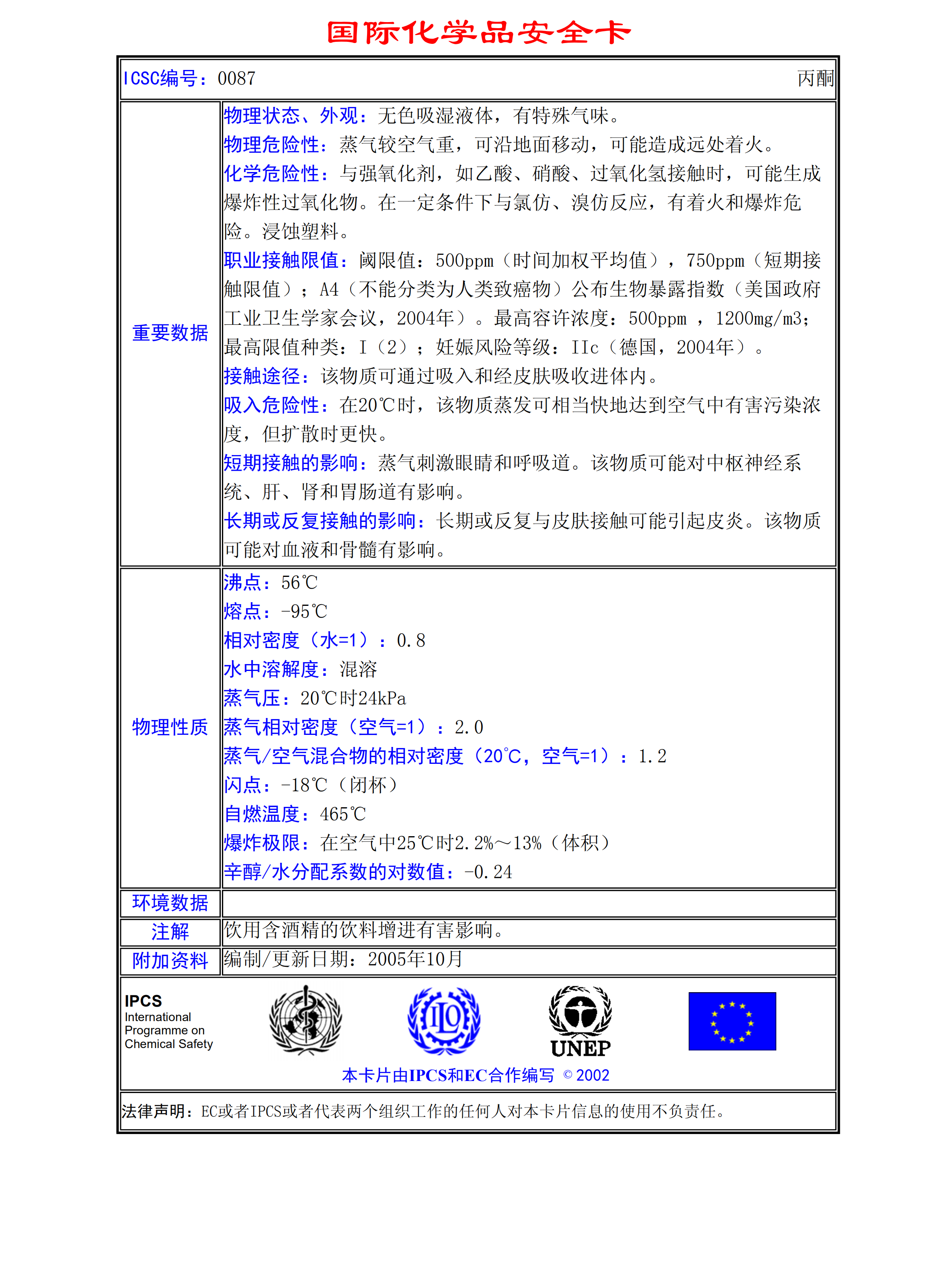 丙酮MSDS