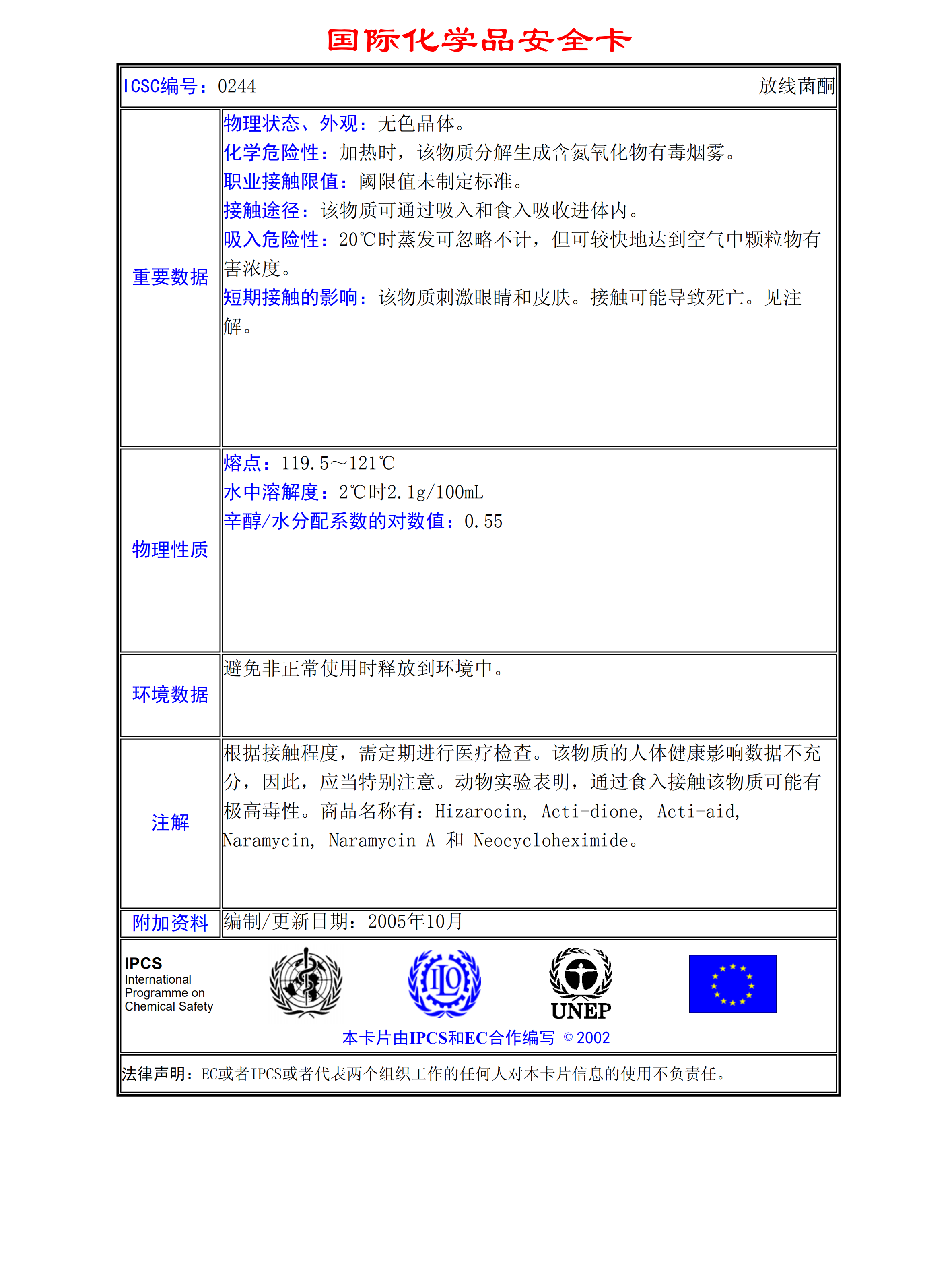 放線菌酮MSDS