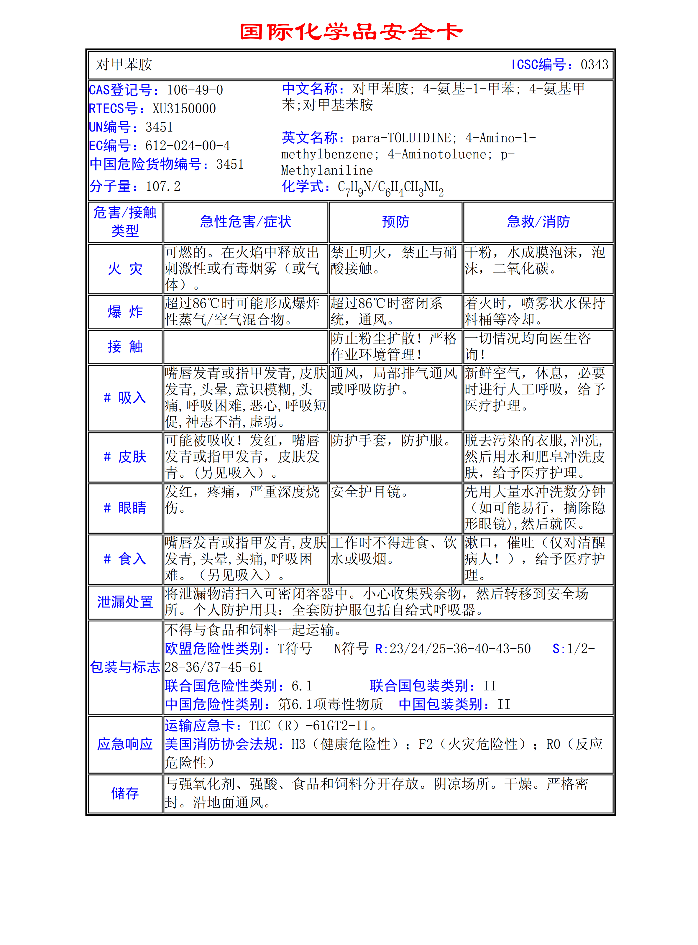 對(duì)甲苯胺MSDS