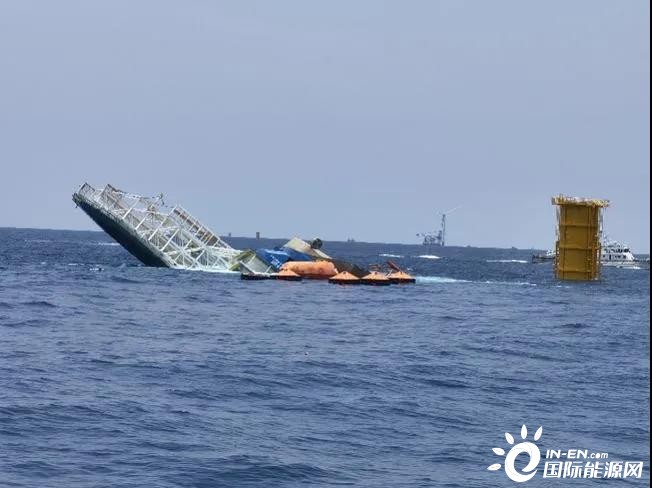 7月26日,中廣核惠州風電項目“升平001”號作業(yè)船施工平臺發(fā)生傾斜事故后,搜救行動進入第二天,仍有4人失聯(lián)!據(jù)了解,"升平001"施工平臺露出水面部分在緩慢減小,有趨向沉沒的跡象,平臺上面的鐵架已倒入水下。