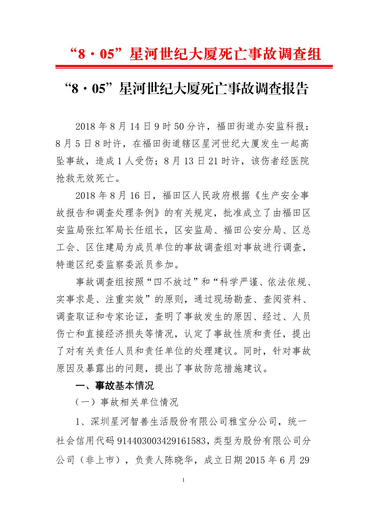 “8.05”星河世紀(jì)大廈死亡事故調(diào)查報(bào)告