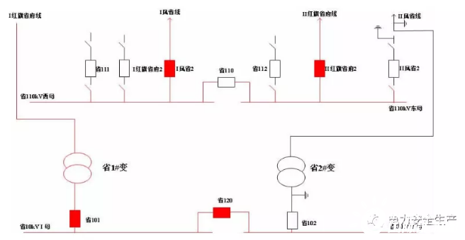 事發(fā)項(xiàng)目為某公司110千伏某變電站110千伏配電裝置改造,改造內(nèi)容為更換110千伏室內(nèi)敞開式手車斷路器,施工中標(biāo)單位為某集團(tuán)有限公司電力安裝分公司(省管產(chǎn)業(yè)單位,簡(jiǎn)稱“安裝分公司”)。為不影響重要用戶供電,改造期間變電站采用Ⅰ紅旗省府線直接串帶省1#變、Ⅱ鳳省線直接串帶省2#變的過(guò)渡方式運(yùn)行。6月12日改造完成后,110千伏母線恢復(fù)運(yùn)行。(運(yùn)行方式見(jiàn)圖1、圖2)