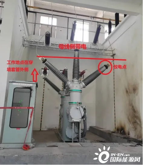 此時(shí),110千伏II鳳省2開關(guān)處于冷備用狀態(tài),II鳳省2東刀閘母線側(cè)帶電。6月17日19時(shí)13分,安裝分公司工作負(fù)責(zé)人孫某和變電運(yùn)維正值沈某前往II鳳省2開關(guān)間隔,違規(guī)使用鋼卷尺進(jìn)行測(cè)量工作(非工作票所列作業(yè)內(nèi)容),在鋼卷尺靠近帶電的母線引下線過(guò)程中發(fā)生放電,導(dǎo)致孫某觸電死亡,沈某被嚴(yán)重?zé)齻#ㄊ掳l(fā)發(fā)生現(xiàn)場(chǎng)見(jiàn)圖3)