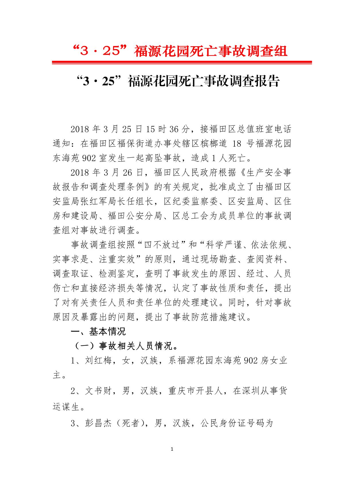 “3.25”福源花園死亡事故調(diào)查報告