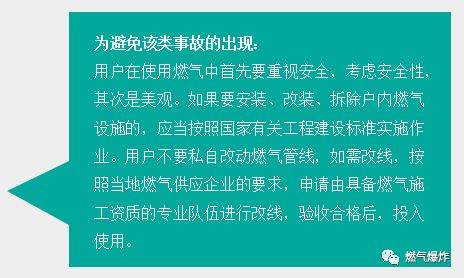 2012年7月27日重慶奉節(jié)縣一居民家發(fā)生天然氣意外泄漏事故,發(fā)生事故的居民家中所有家具和電器都被燒毀,窗戶的玻璃已被震爛。爆炸造成一家6人燒傷,最終一人搶救無效死亡。據(jù)網(wǎng)上報道爆炸是由于天然氣管道與輸氣軟管之間存在縫隙,導(dǎo)致天然氣泄漏引發(fā)的。在該戶家中,發(fā)現(xiàn)新買的燃?xì)庠罹?,是個三無產(chǎn)品。該戶的燃?xì)夤艿?,是由兩根軟管接起來的,一根軟管不夠長,中間還用一根硬塑料管連了起來,還使用了膠水來粘接,這是非常危險的作法,連接的塑料管是硬的,天然氣完全可能因連接處泄漏出來。也許是用戶點(diǎn)了火,也許只是開了某一種電器的開關(guān),就引起了天然氣爆炸,隨后的火焰擴(kuò)散,屋內(nèi)東西全部燒毀。
