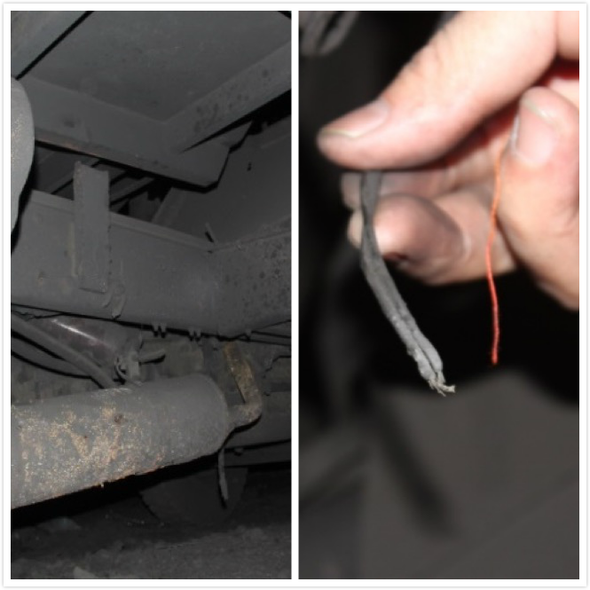 圖7 C17號(hào)車(chē)排氣管圖8 C17號(hào)車(chē)駕駛室裸露電線