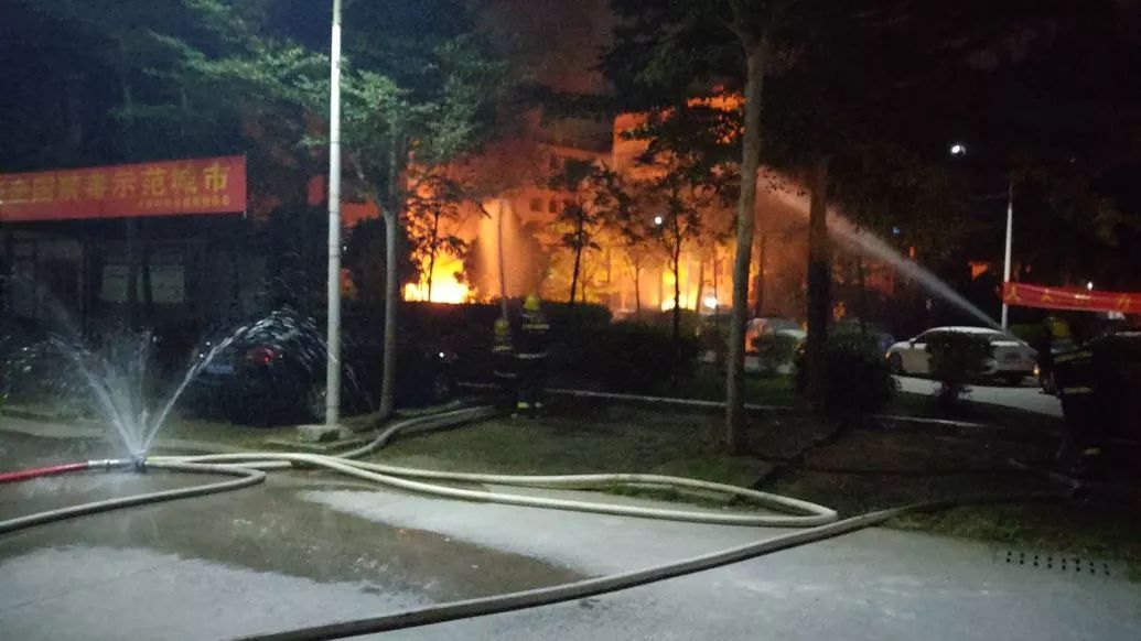 2時(shí)34分,中隊(duì)剛到場(chǎng),指揮員立即勘查現(xiàn)場(chǎng),小車已被大火吞噬,火災(zāi)已蔓延到附近的出租屋,有人員被困,聽(tīng)到有六七聲爆炸聲,并看到有氣瓶飛到河對(duì)面。
