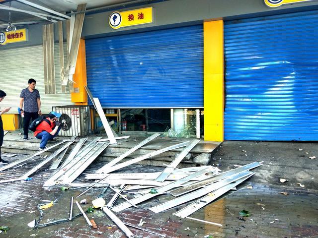 馬路及馬路對(duì)面均有大量玻璃散落在地。