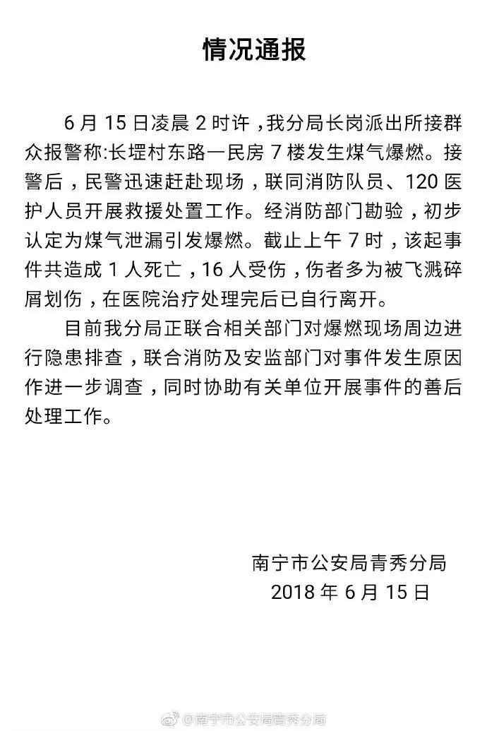 1死16傷!今天凌晨南寧長堽村一民房發(fā)生爆炸,最新警方通報來了