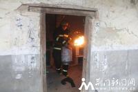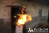 8時(shí)30分,消防官兵到達(dá)現(xiàn)場(chǎng),據(jù)現(xiàn)場(chǎng)偵察情況發(fā)現(xiàn),房屋內(nèi)一煤氣罐正向外噴射火焰,引燃了灶臺(tái)上的許多物品,煤氣罐隨時(shí)可能發(fā)生爆炸,造成人員傷亡,情況十分危急。消防戰(zhàn)斗員慕晨曦沒(méi)有絲毫猶豫,立即將手套打濕,一把抱起著火的煤氣罐就往外跑。屋外正飄著小雨、刮著風(fēng),雖然戴著消防頭盔,可火焰擦過(guò),還是燙紅了他的臉龐。小跑至空曠地帶后,慕晨曦才將煤氣罐放下,消防官兵們連忙對(duì)罐身噴水降溫,并用濕抹布蓋滅火焰,關(guān)閉閥門。在撲滅屋內(nèi)殘火并確認(rèn)煤氣罐無(wú)復(fù)燃可能后,消防官兵收整器材返回。