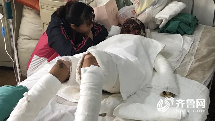 李慧霞介紹說:“9月10號液化氣泄漏,引起他父子燒傷,然后送于高密市人民醫(yī)院,結(jié)果高密人民醫(yī)院說是病情嚴(yán)重沒接收,然后轉(zhuǎn)入濰坊市人民醫(yī)院,醫(yī)生診斷說孩子的父親是90%燒傷面積以上,孩子是40%以上的燒傷面積?!?/div>