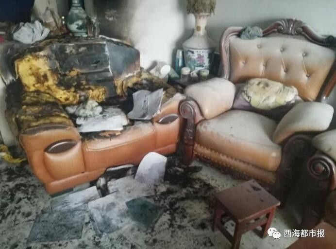 走進(jìn)事發(fā)的住戶(hù)家,屋里一片狼藉,沙發(fā)、電視機(jī)、洗衣機(jī)、電燈開(kāi)關(guān)等物品被燒,臥室和客廳的玻璃碎了。家里養(yǎng)的小貓蜷在陽(yáng)臺(tái)上一動(dòng)不動(dòng),它的嘴巴在流血,胡子和尾巴被燒。